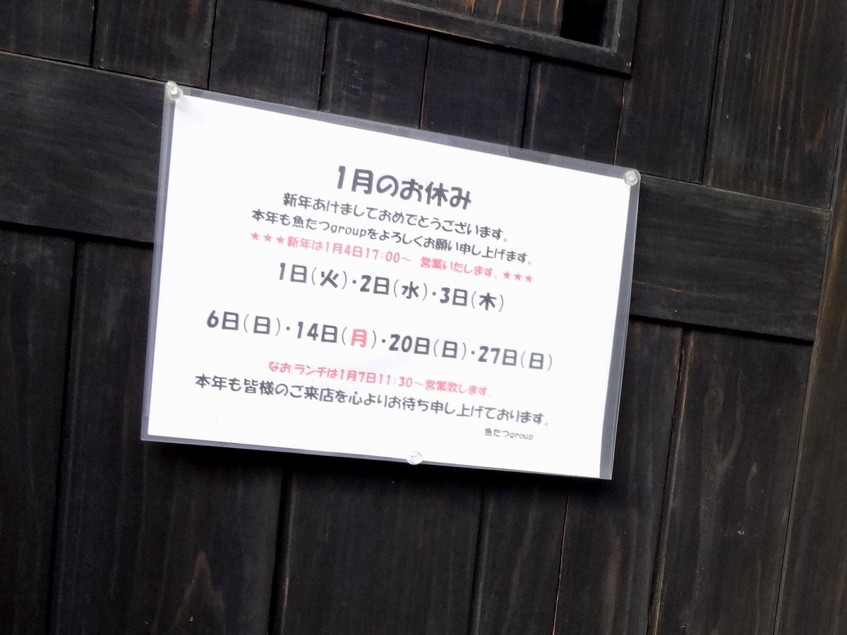 到着したのは江戸町にある「隠れ居坂屋 魚たつ」ですが前回来たのも昨年の正月明けでちょうど同じ日でした(^^;