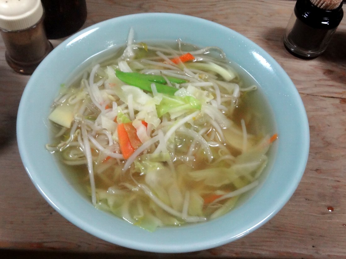 私が注文したのはワンパターンの「湯麺(タンメン)」600円ですがそれを聞いた奥様が「あら!」・・私の顔を見直して「お久しぶり」と言ってくれたのは10年くらい前のことをまだ覚えていたのですね(^O^)