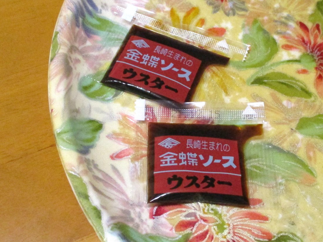 購入して夕食で食べることにしましたが何と「金蝶ソース」が入っていました・・・長崎では「皿うどん」に欠かせないウスターソースですが誕生の経由は判らなくなっているそうです