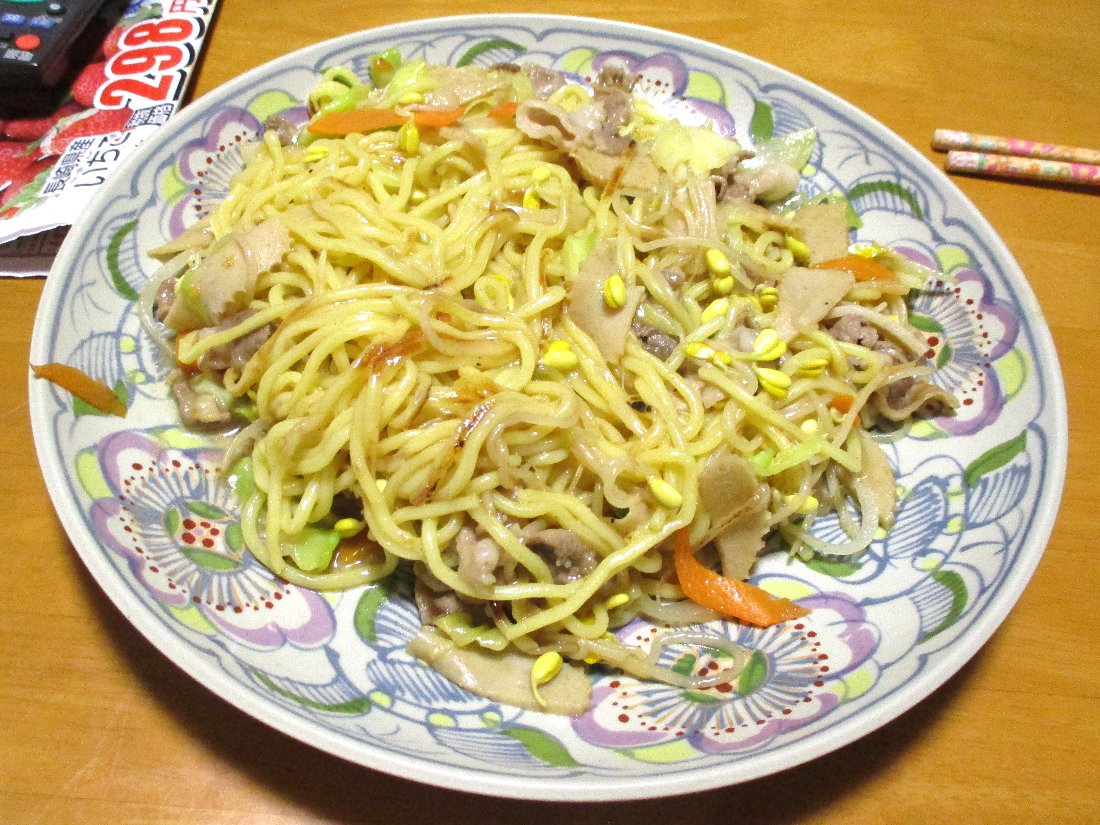 夫婦二人だけの生活になってから自宅の冷蔵庫にはあまり多くの野菜が入っていないので必要な時は食品スーパーで販売している「野菜パック」を購入するのでちょっと「皿うどん」向きじゃ無い野菜も入っています(^^;