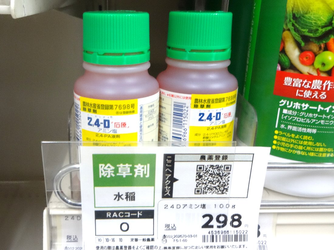 おそらく長崎市内ではこのお店でしか販売していないであろう芝生用の除草剤「2.4-D」を購入するためです・・・芝生に使える除草剤にしては格安なんですが時津のコメリやナフコでは販売しているのに市内のOKやナフコでは販売していないのです