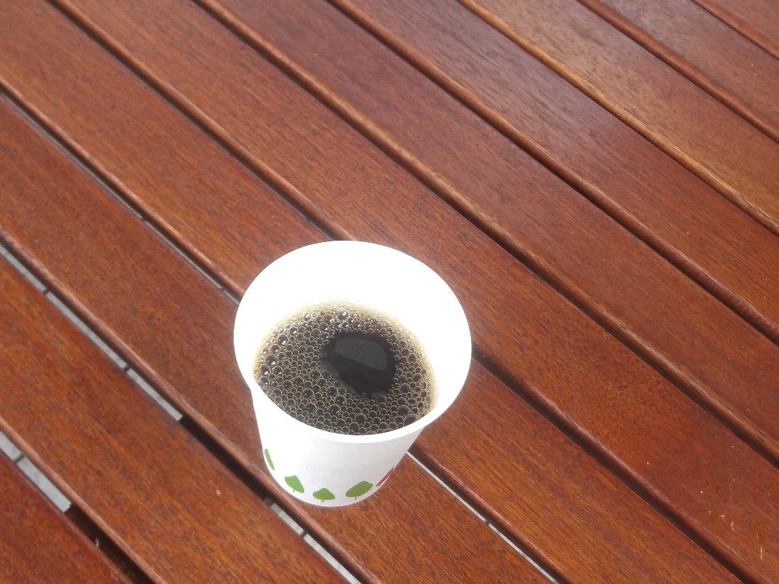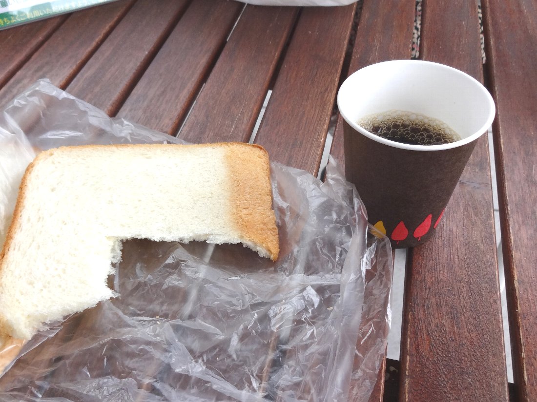 パンをいくつか購入した後はレジで貰った「パンの耳」を無料のコーヒーと共に頂きました(^^)