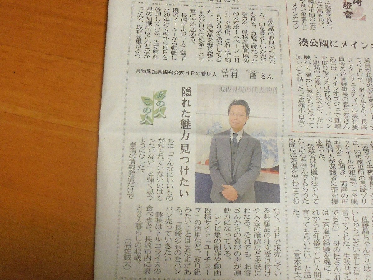 長崎新聞に知人の「吉村さん」が紹介されていました(^O^)