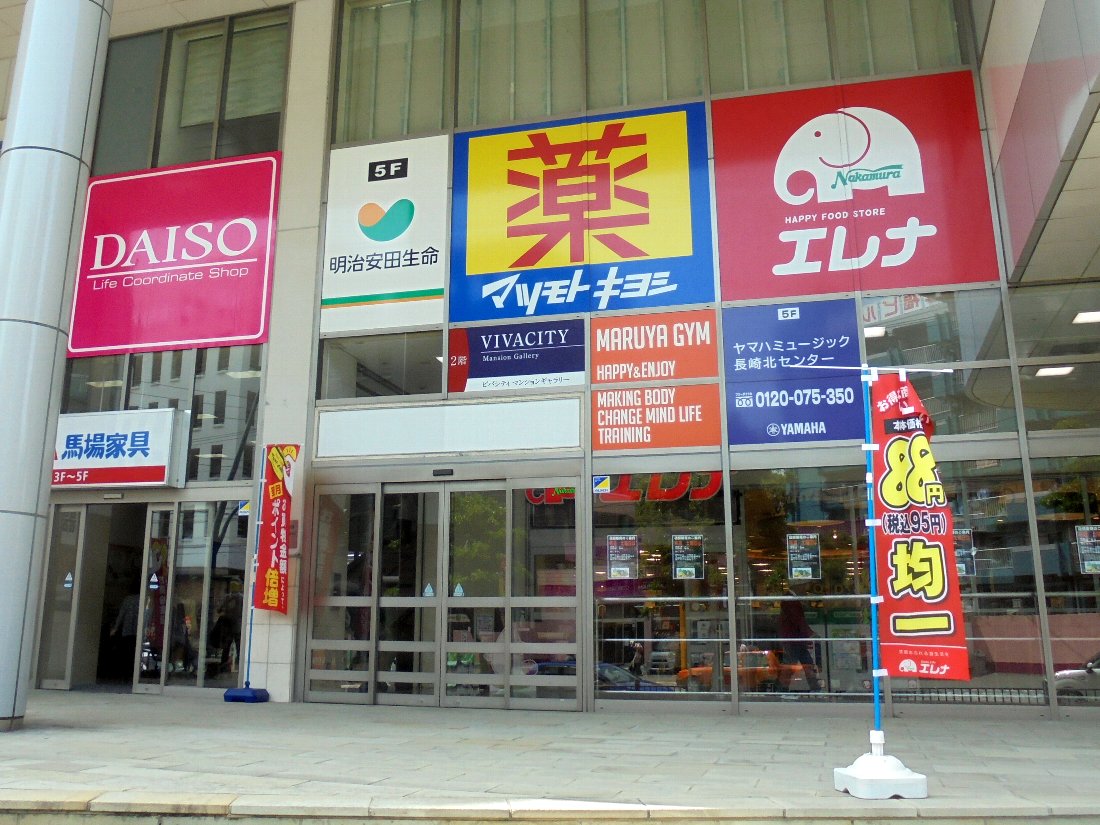 メインは「馬場家具」なんでしょうが表を見ると「エレナ」「マツモトキヨシ」「ダイソー」の看板が目立ちますね(^^;