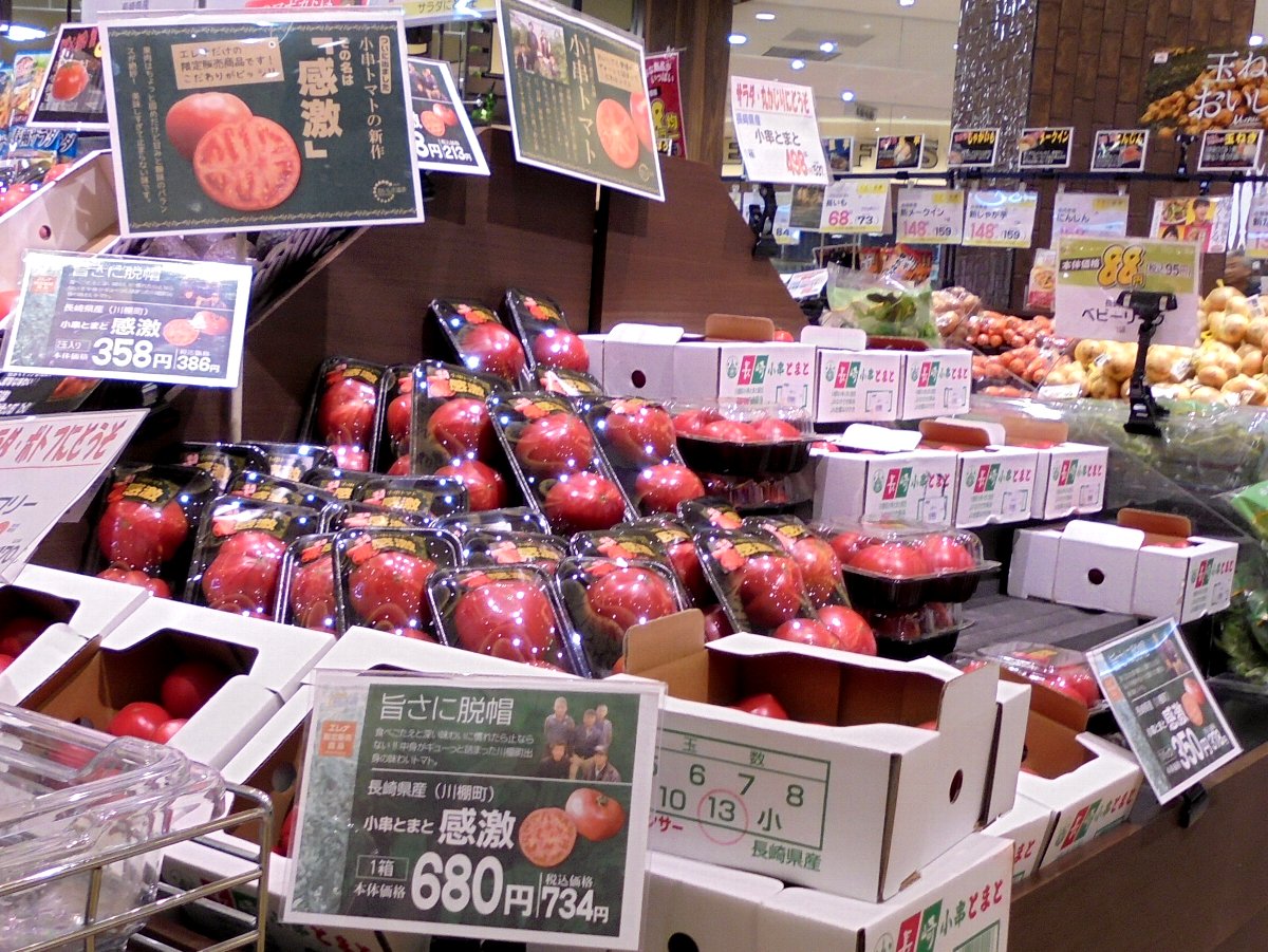 その隣には最近存在を知った川棚の「小串トマト」も販売していましたが形は似ていますね・・・トマトが嫌いな私が購入することはありませんが(^^;