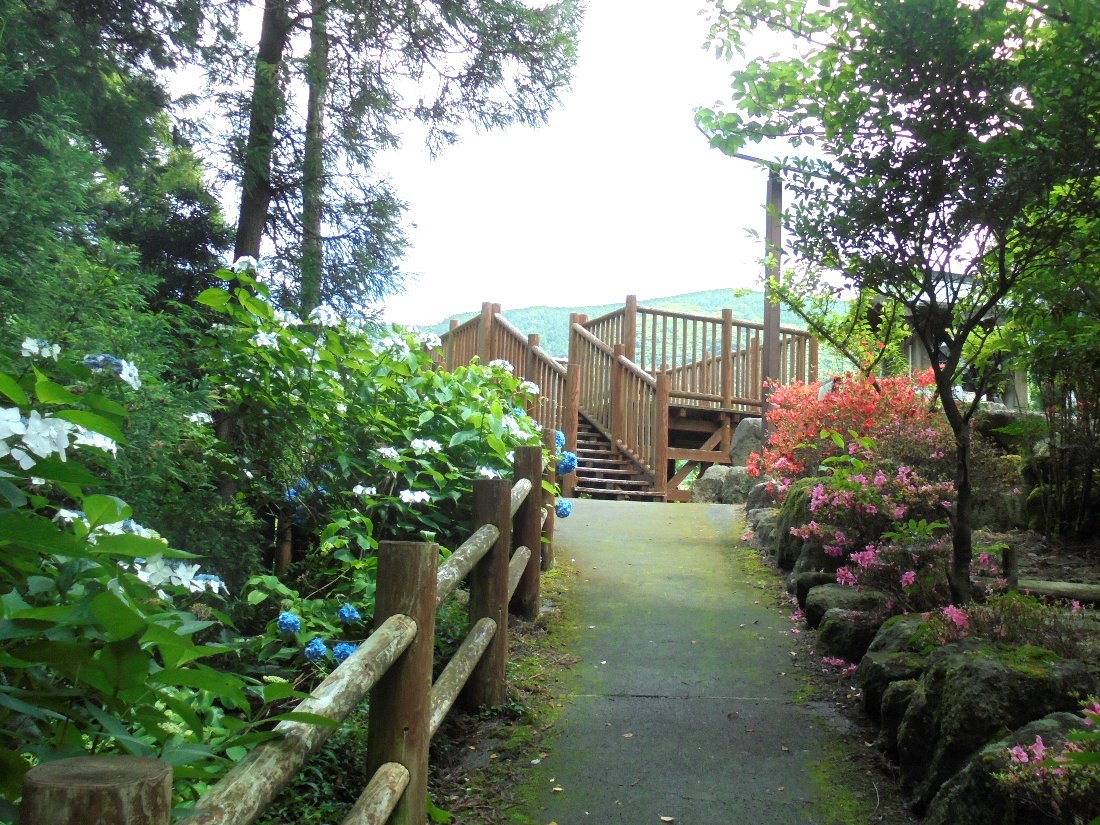 途中でちょっと車を停めて「アジサイ」と「雲仙つつじ」が並んでいる道を抜けると