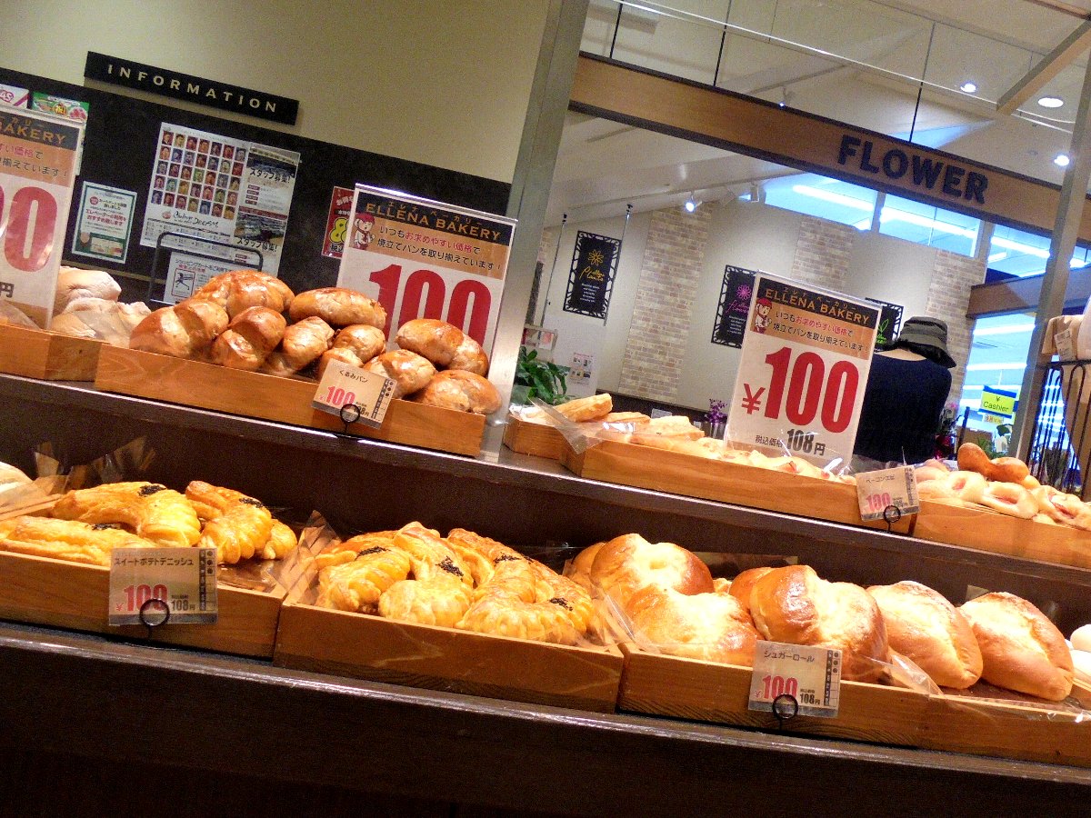 店内に入ると「休憩コーナー」がありその先にあるのが目的の「エレナベーカリー」です・・・「100円」の表示がえらく目に付きます(^^;