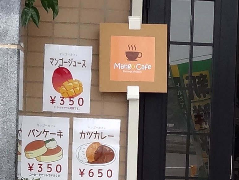 今までは「お食事処」だったのが「マンゴーカフェ(Mango Cafe)」という名前になっておすすめメニューも店頭に掲示しています