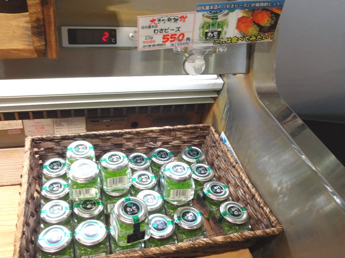 刺身コーナーで見かけたのはテレビ番組でよく取り上げられている田丸屋の「わさビーズ」ですが実物を目にしたのは初めてですね