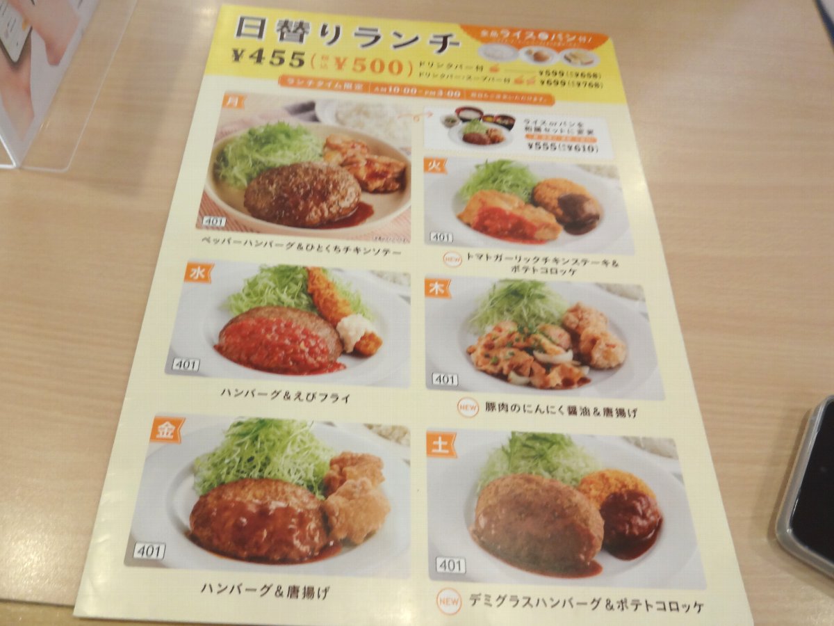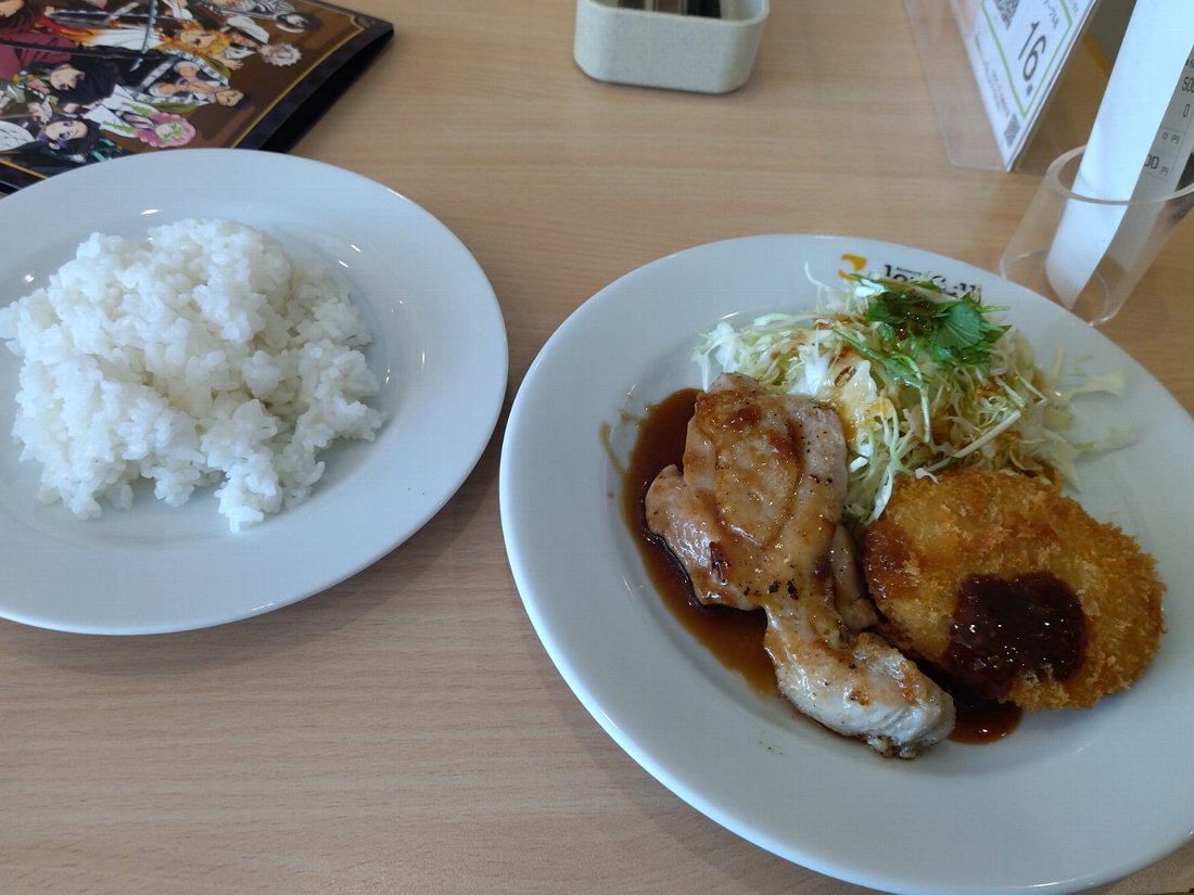 この日の「日替りランチ」は「照り焼きチキンステーキ&ポテトコロッケ」だそうですが税込み500円は安いですよね・・・先日はここより安かった「ガスト」が値上げしていましたがそれでも地元のファミレスじゃ太刀打ちできませんよね