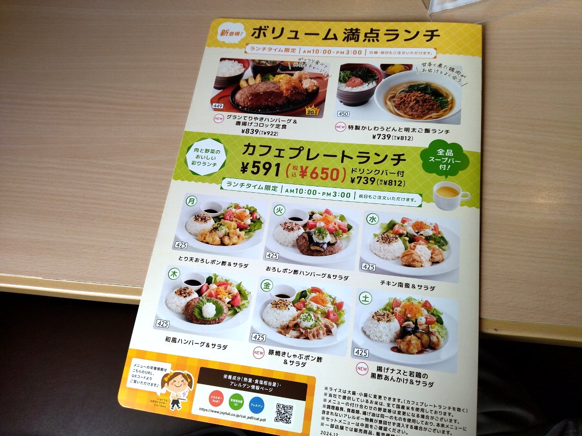 フロアガイドを見ると2階に「ジョイフル」があるんですね・・・この日はこの後「プール」に行くのでランチを食べていくことにしました
