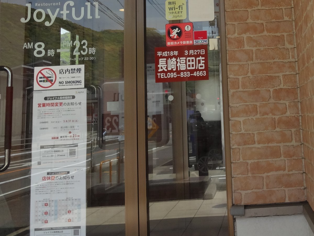 「ジョイフル福田店」でランチを食べることにしました・・・最初は帰る途中にある長崎県庁の「シェ・デジマ」で食べようかとも思ったのですが、作り置きの冷めたメニューよりまだファミレスの暖かいランチがいいと思ったのです