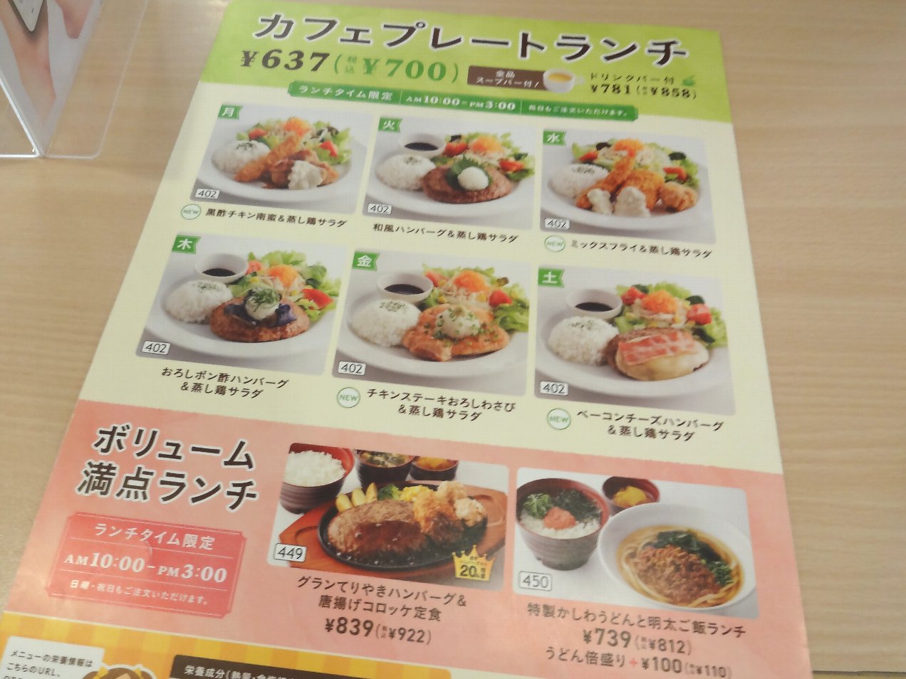 「カフェプレートランチ」も内容が変わっているみたいですが私が頼むことはないでしょう
