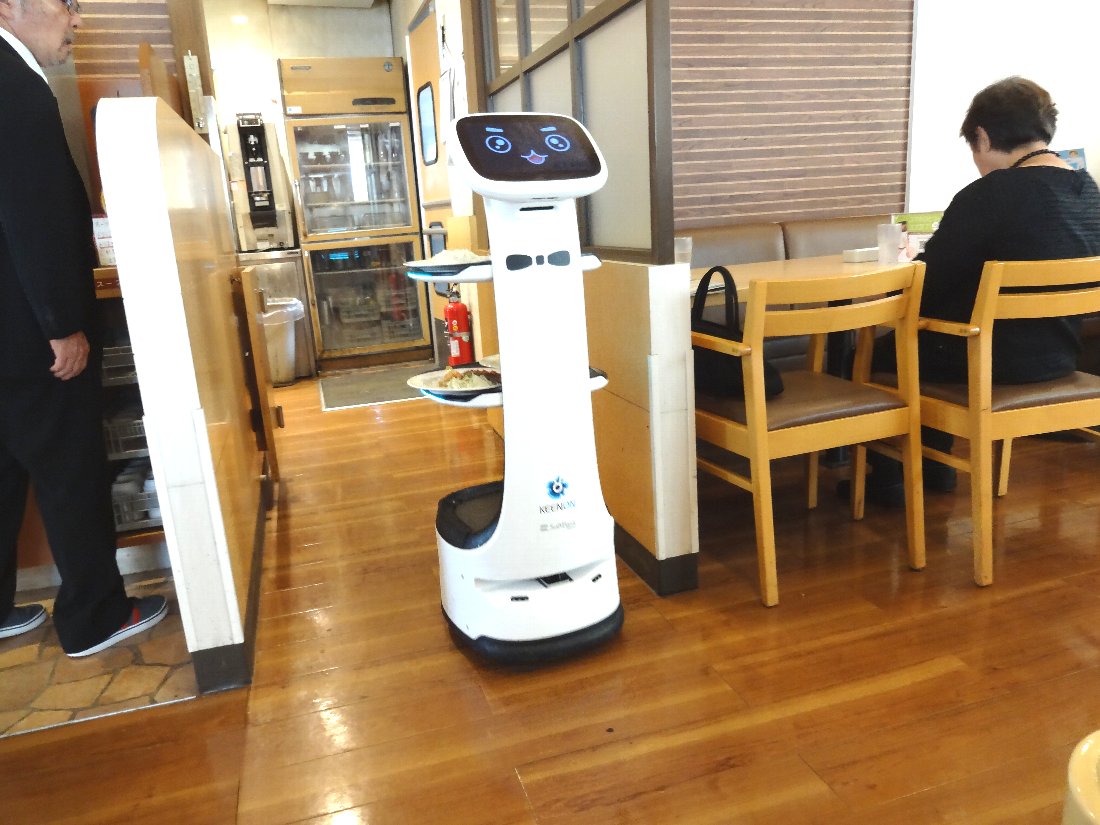 最初見た時は驚きましたがファミレスはどこも「配膳ロボット」になっているのかな?