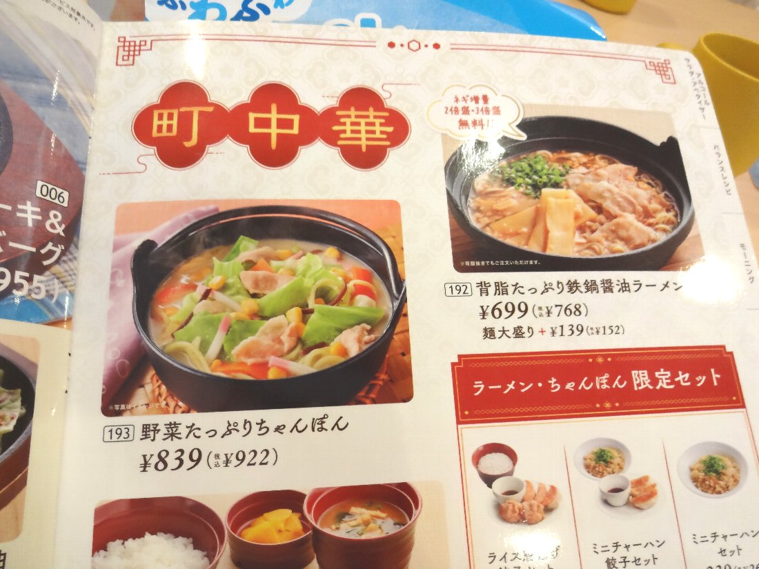 注文した後メニューをチェックしましたが「町中華」メニューに「野菜たっぷりちゃんぽん」というのが加わっていました