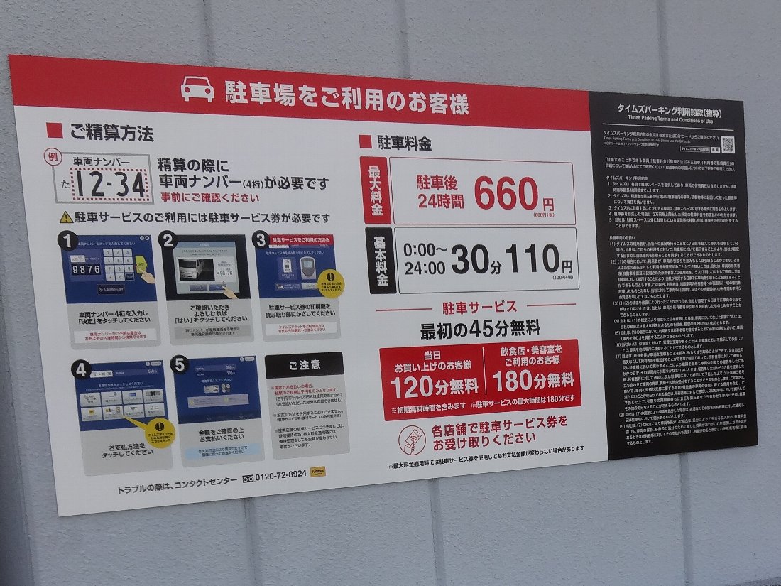 駐車場は「最初の45分は無料」で買物をすると2時間無料ですから「ダイソー」で何か買うといいのですね(^^)
