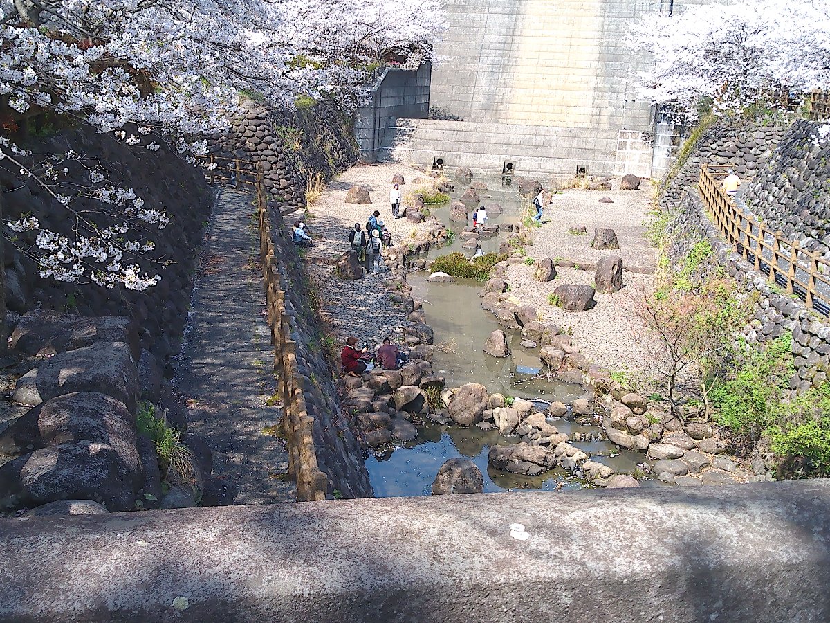 石橋の先には「下流公園」があり最近は平日でも駐車場を開放しているので家族連れや「デイサービス」の人が大勢集まっています・・・5年ほど前までは桜の季節でも閑散としていたのですが(^^;