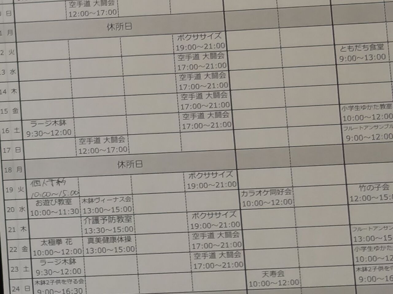 この日の予定表を見るとまぁそこそこ利用者はいるみたいですが