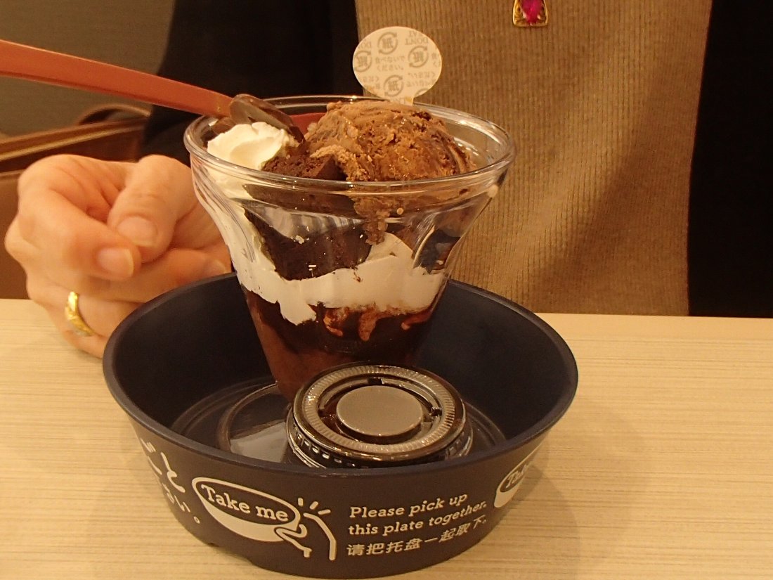 女房はワンパターンで最初にデザートの「プレミアムガーナアイスと チョコの濃厚パルフェ」429円という長ったらしい名前のスイーツを注文していましたが