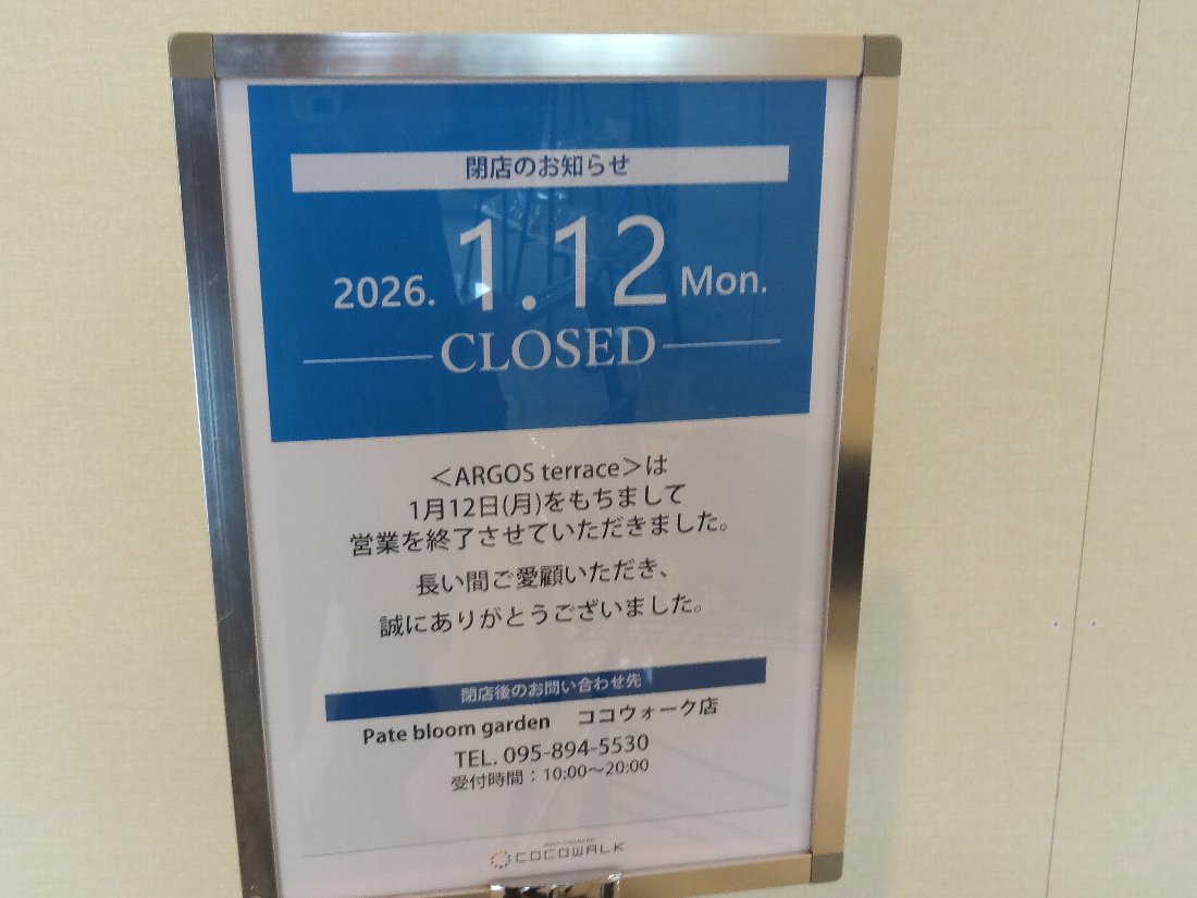 「ARGOS terrace(アルゴステラス)」というレディースファッションのお店も閉店するそうですがこちらも3年ほど前にオープンしたばかりですよね