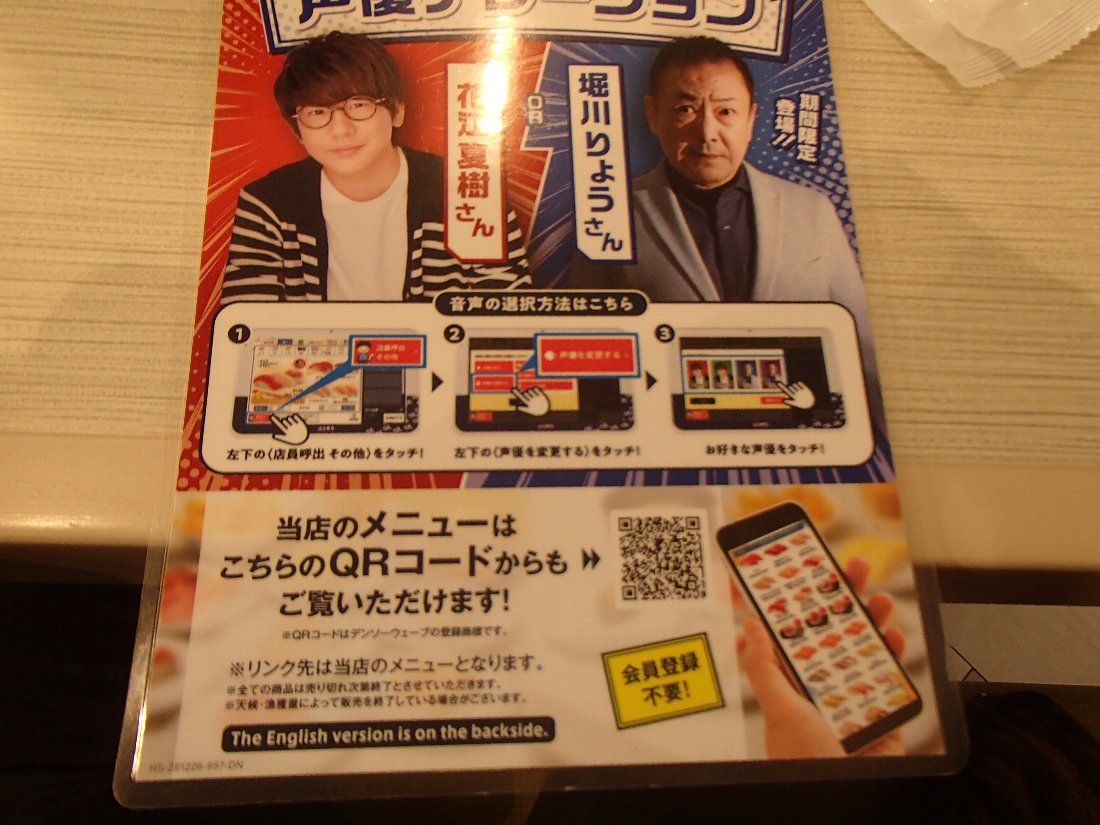 レーンの上に表示されているメニューからも注文できるそうですが、価格が判らないのじゃ私たち向きじゃありませんね(^^;