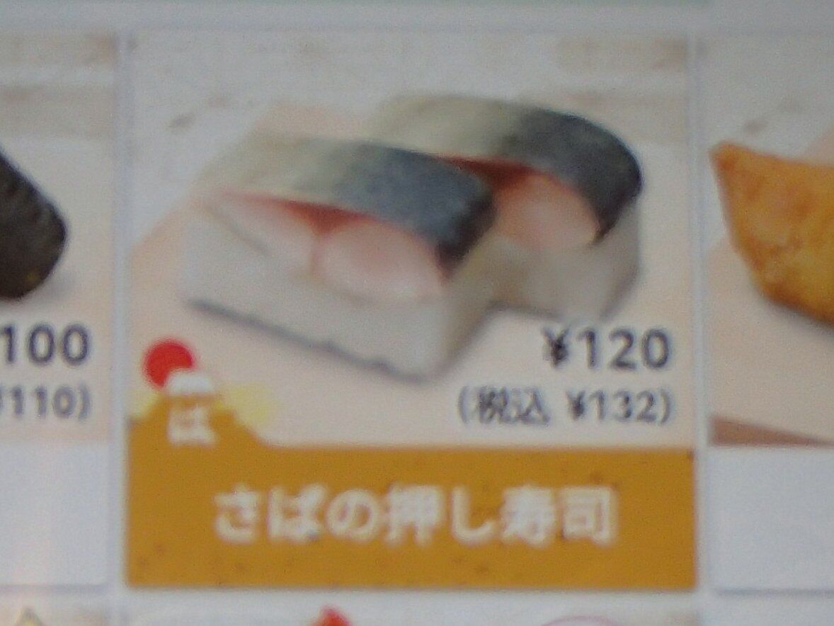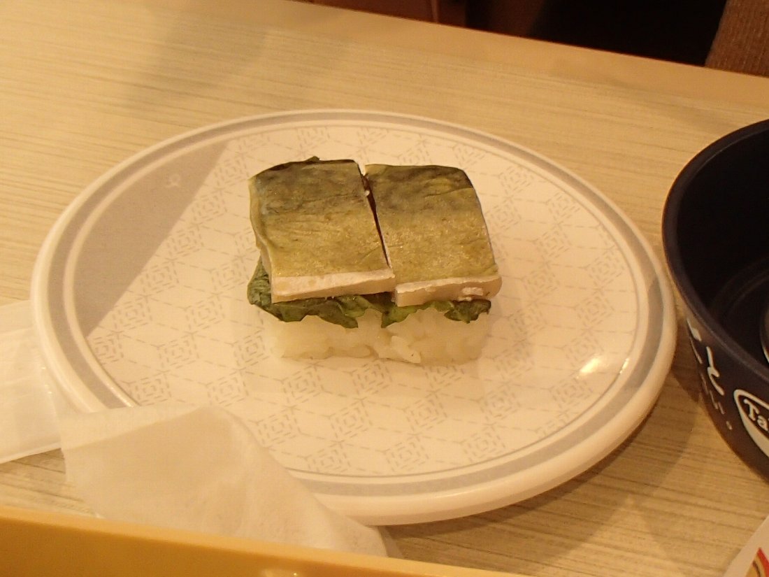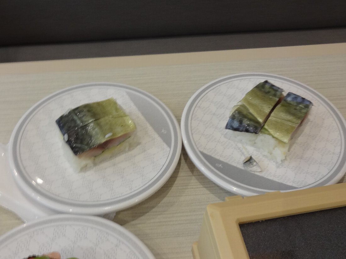 前回「かなり酷い」出来だった「バッテラ」も試しに一皿のみ注文していましたが「鯖」の大きさは戻っていました
