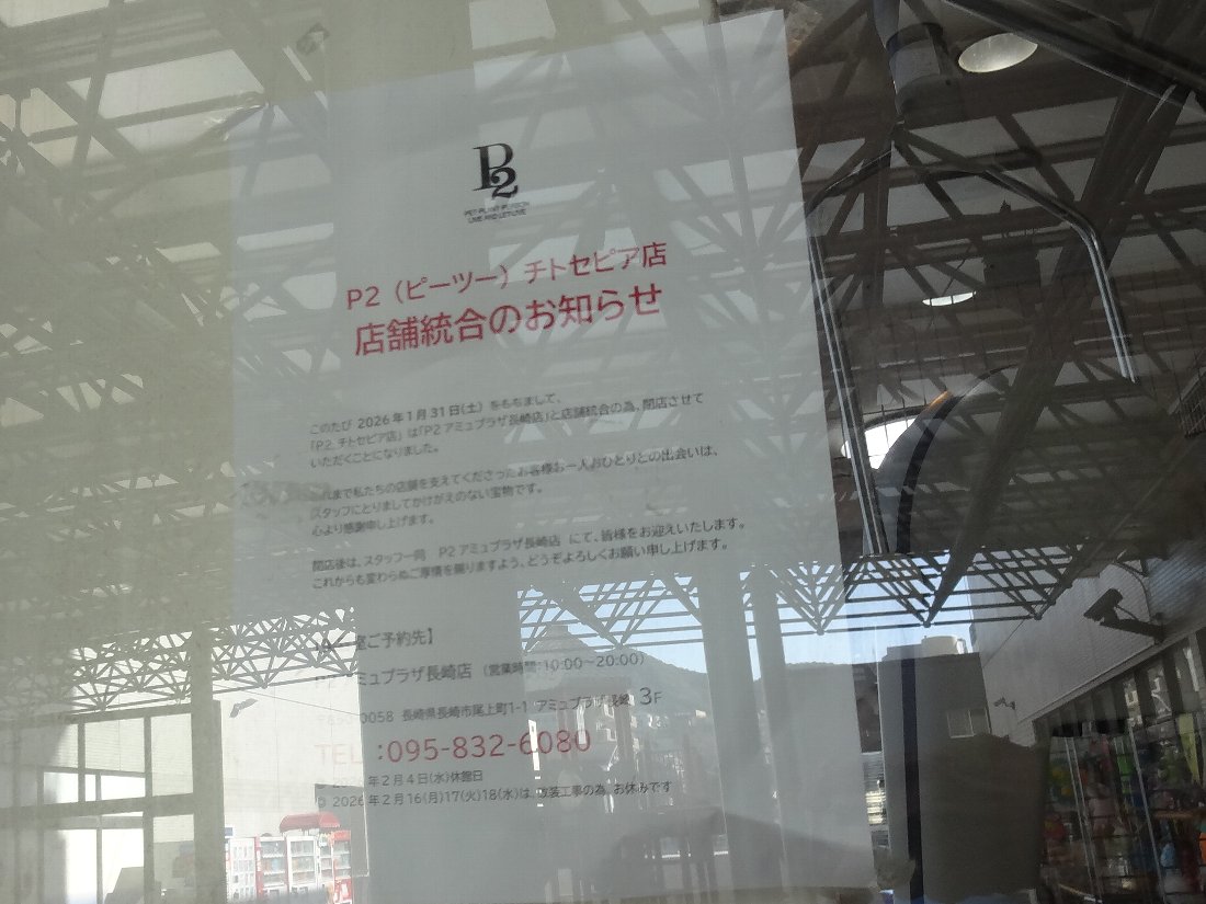 駐車場と本館の間にあるペットショップですがいつの間に「ザッキー」から「P2」に名前が変わっていたのでしょうか・・・それも今月末でなくなるそうですが