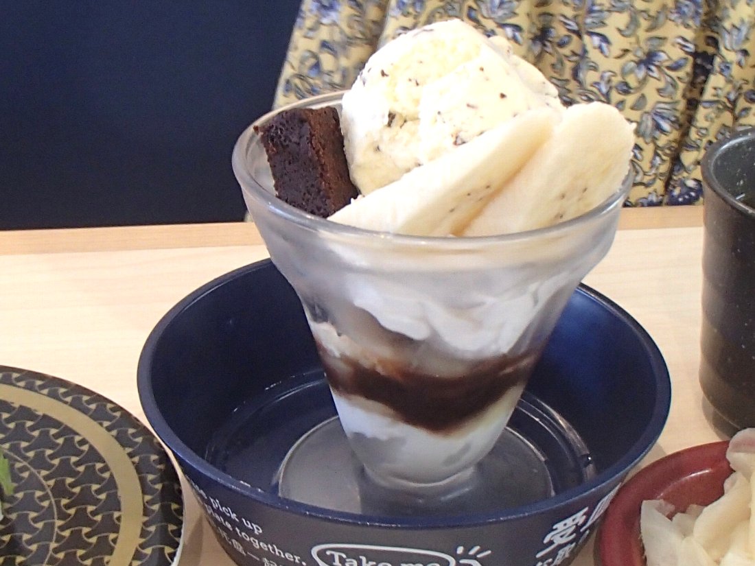 女房は「260円以上にすればいいのに」と言いつつ「甘熟王バナナと チョコレートのパルフェ」418円を注文していました