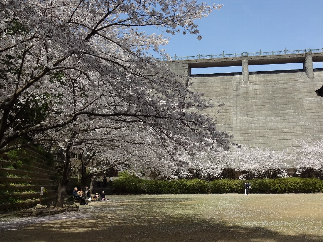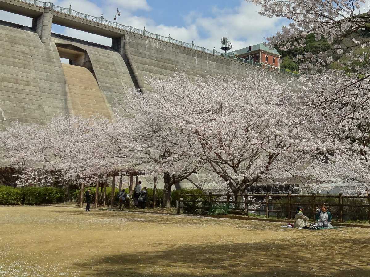 石門を抜けるとダム下に公園がありますがこちらは「西山ダム河川公園」と名前が違います・・・家族連れが花見を楽しんでいますが立山公園や風頭公園に比べると信じられないくらいゆったりとしています(^^)