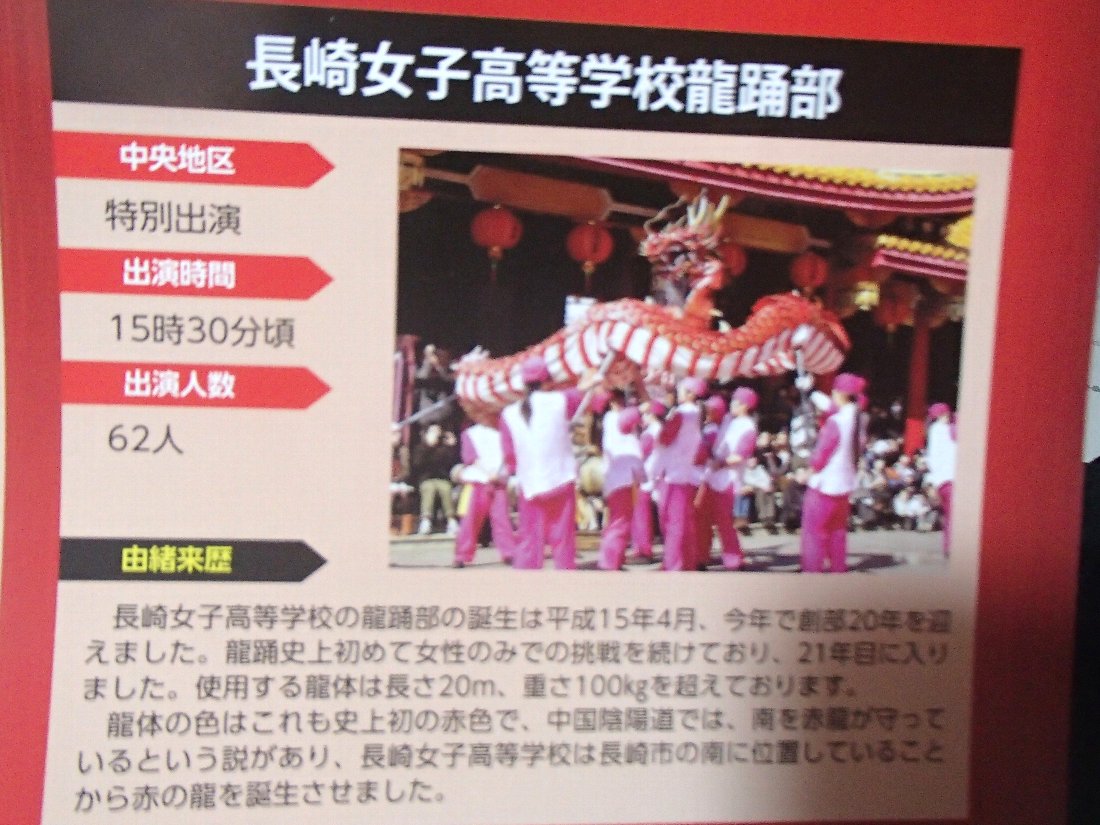 今まで何度か見たことがある「長崎女子高」の「龍踊部」が出場するんですって(゜o゜)