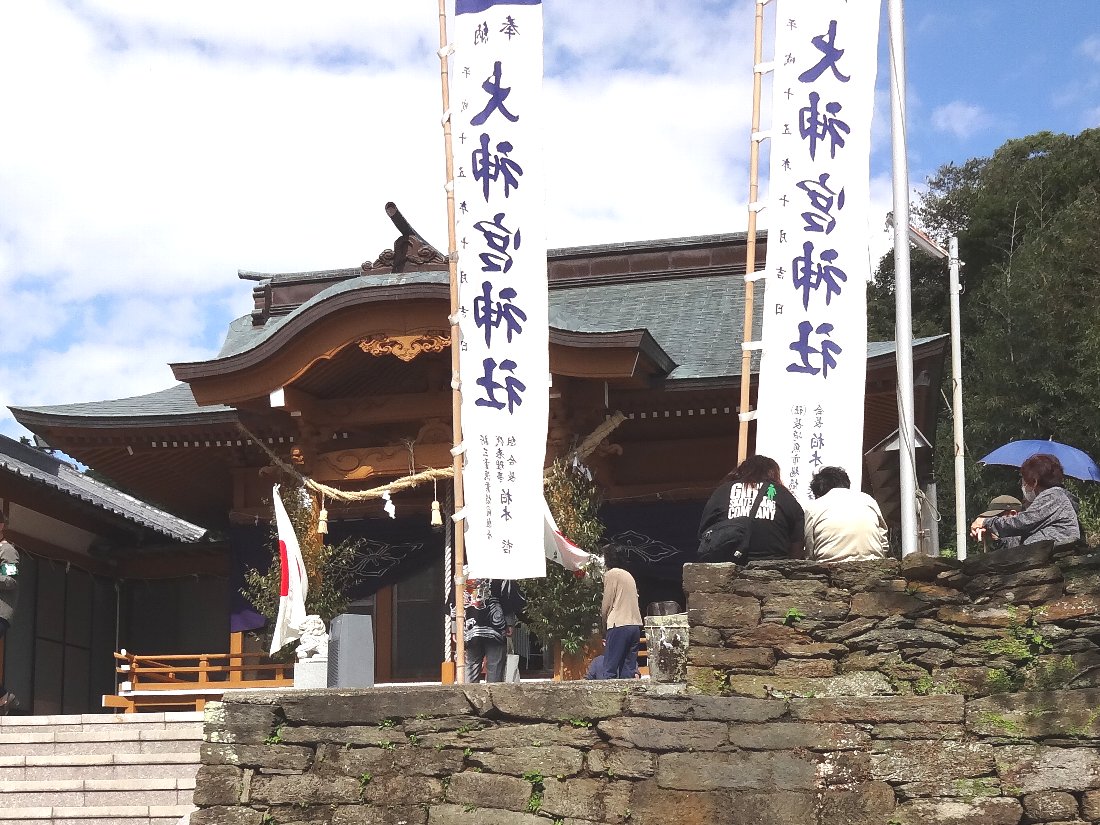 神社に上がって待っているとしばらくして自治会の幟を先頭に