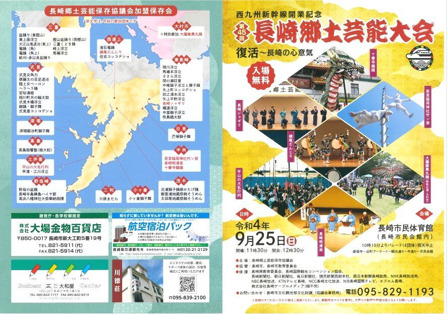 地域センターに行ったら「長崎郷土芸能大会」の案内がありましたが今年は10/1に開催されるそうですね