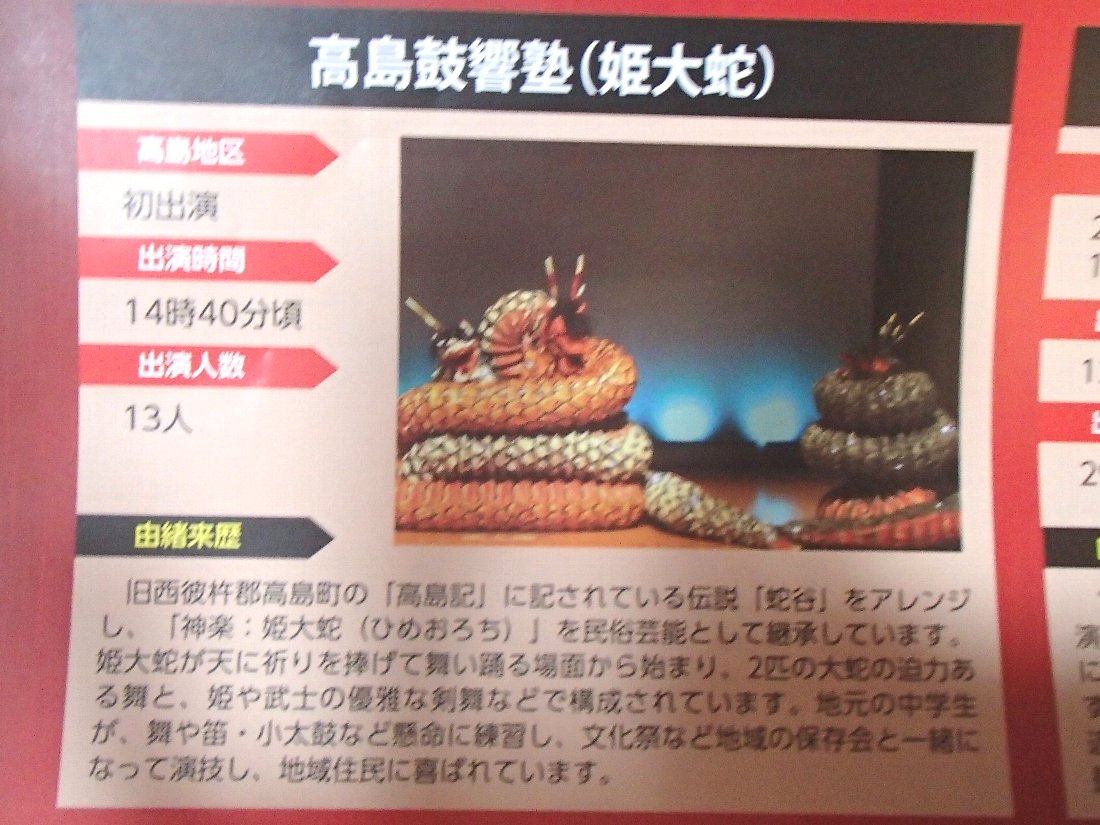 さらに今回初参加だという高島の「高島鼓響塾(姫大蛇)」というのは全く知りませんでしたが・・・ネットでもほとんどヒットしませんしどうやら中学生の文化祭レベルみたいですね