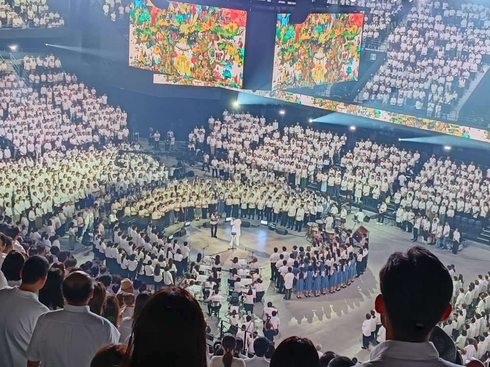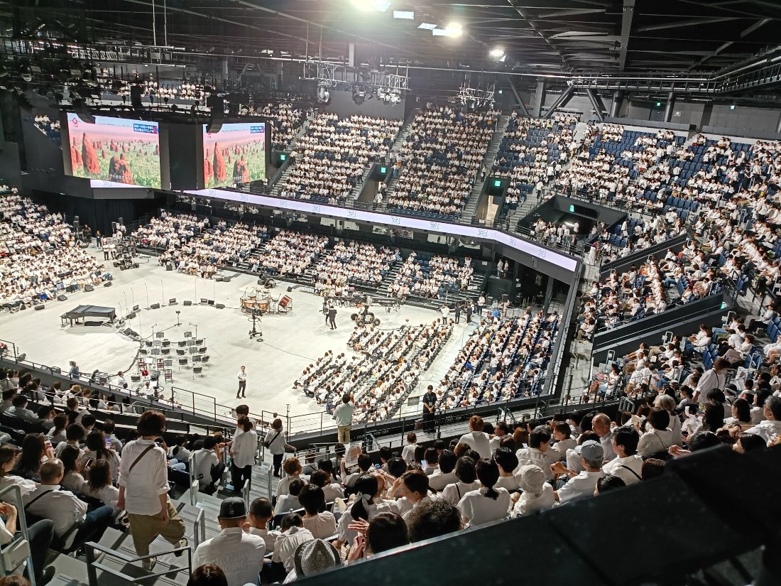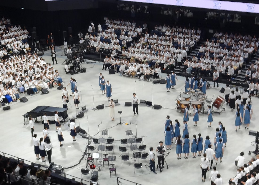 合唱に参加するのは1階にいる人だけですから「5000人と一緒に合唱」するわけではありません