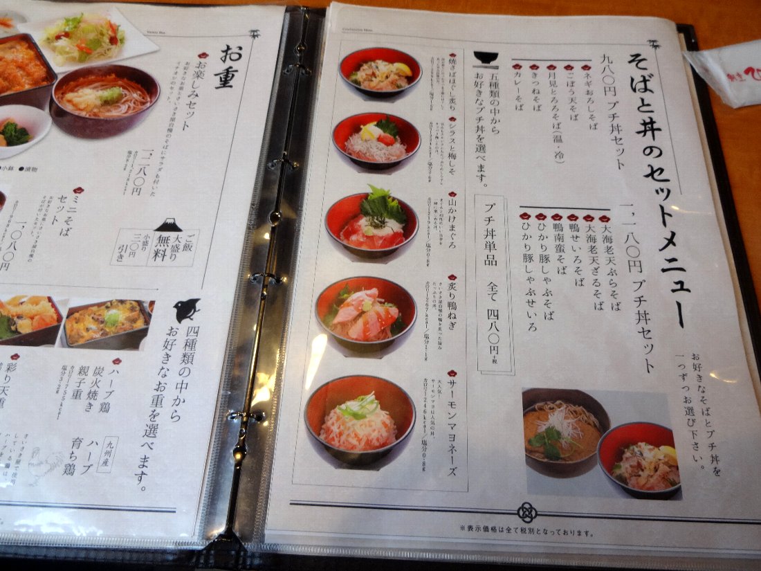 女房が好きな「プチセット」は480円税込のままでしたが・・・どちらにしろこの「築町店」は税込ですから大村店の「ざる蕎麦」480円税抜に比べるとかなり安いのです