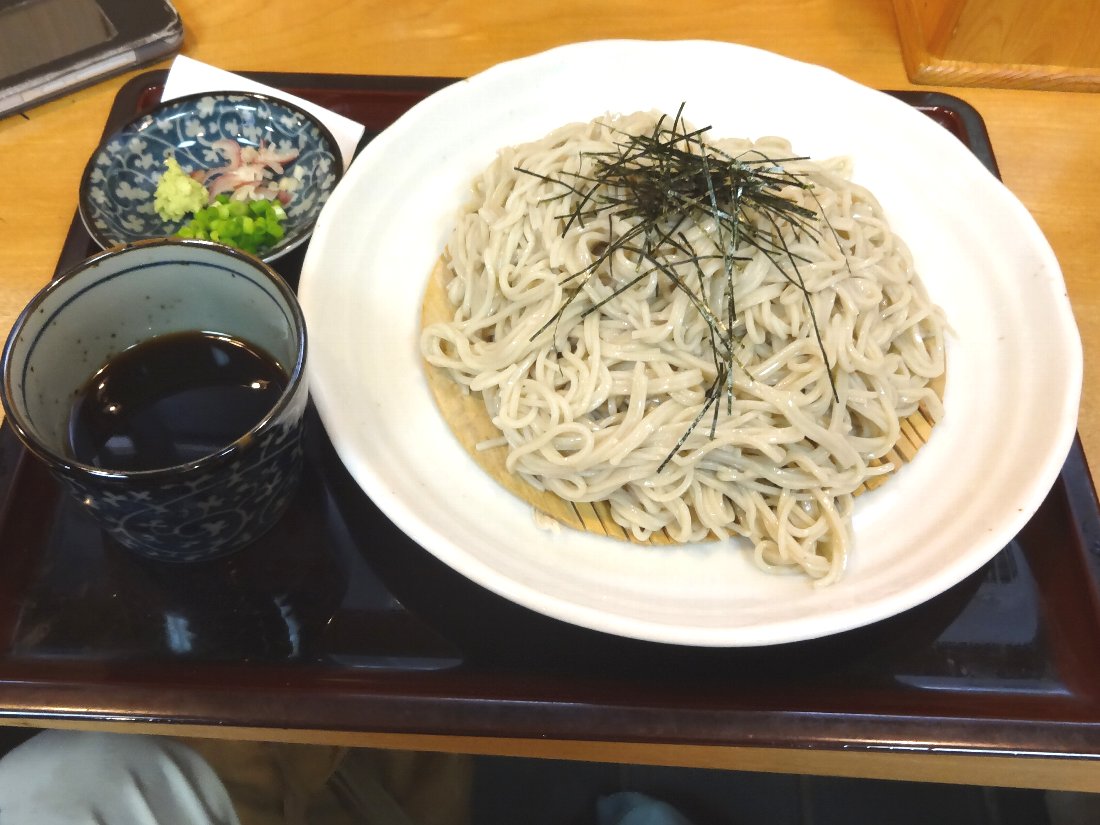 私は「日替り」か「大ざる」を頼むことが多いのですがこの日の暑さであまり食欲が無く「ざる蕎麦」390円税込を「蕎麦1.5倍」+110円にしましたがよく冷えた蕎麦は思った以上に美味しかったので2倍でも良かったかな(^^;