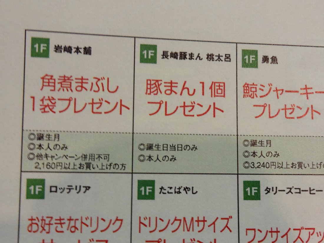 この日は女房の誕生日だったので「誕生日はアミュがおトク!」に従って今年も「アミュプラザ長崎」に行ってきました・・・各店舗のサービスより一番役に立つのは「駐車場2時間サービス」ですね(^^)v