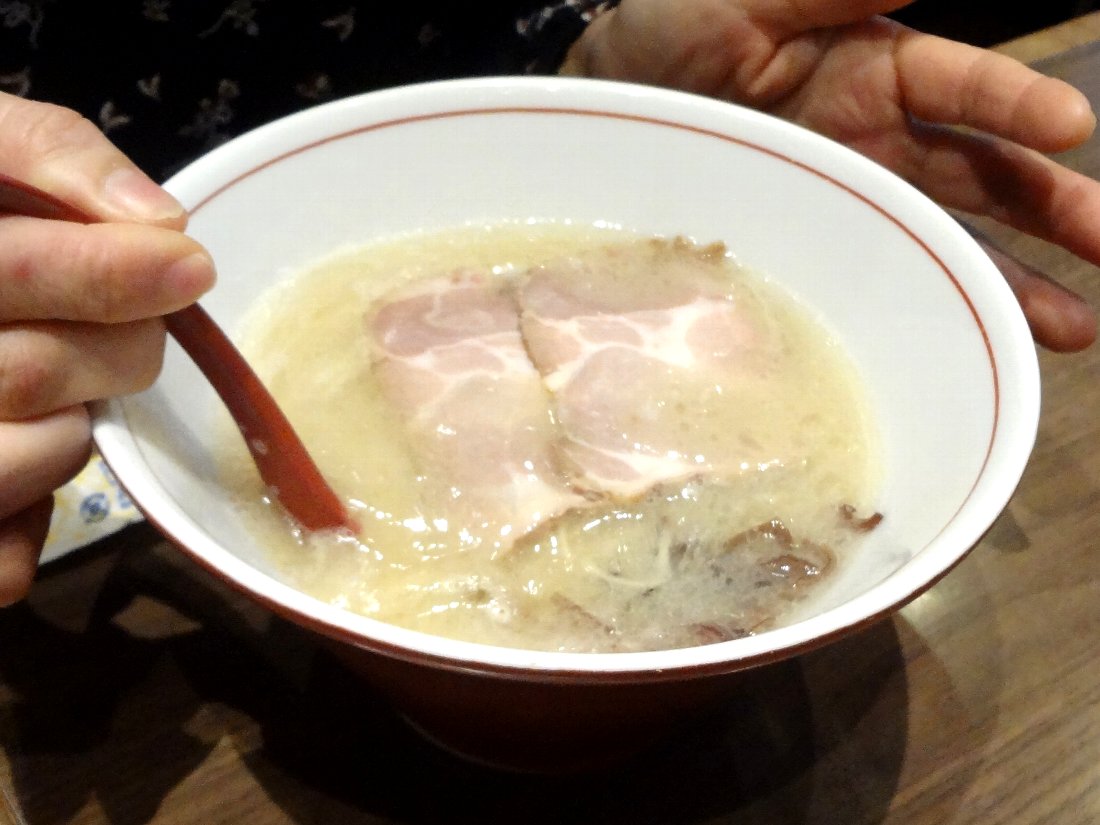 こちらが女房が注文した「らーめん」730円ですが「ネギも要らない」そうですからずいぶん殺風景ですね(^^;