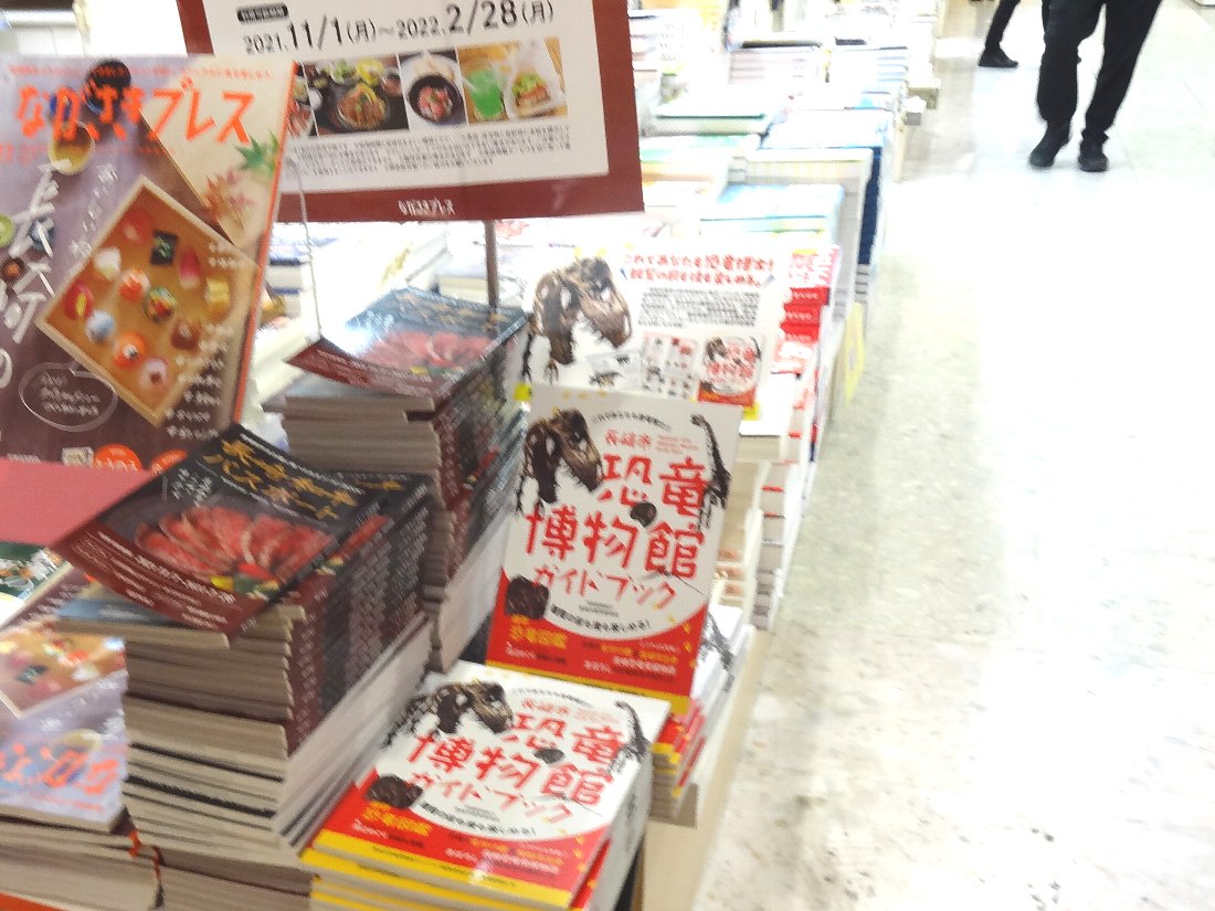 駐車場からアミュプラザに入ると「メトロ書店」で「恐竜博物館ガイドブック」なるものが販売されていましたが、その隣には何と「長崎プレス」の「長崎和牛パスポート」がありました(゜o゜)