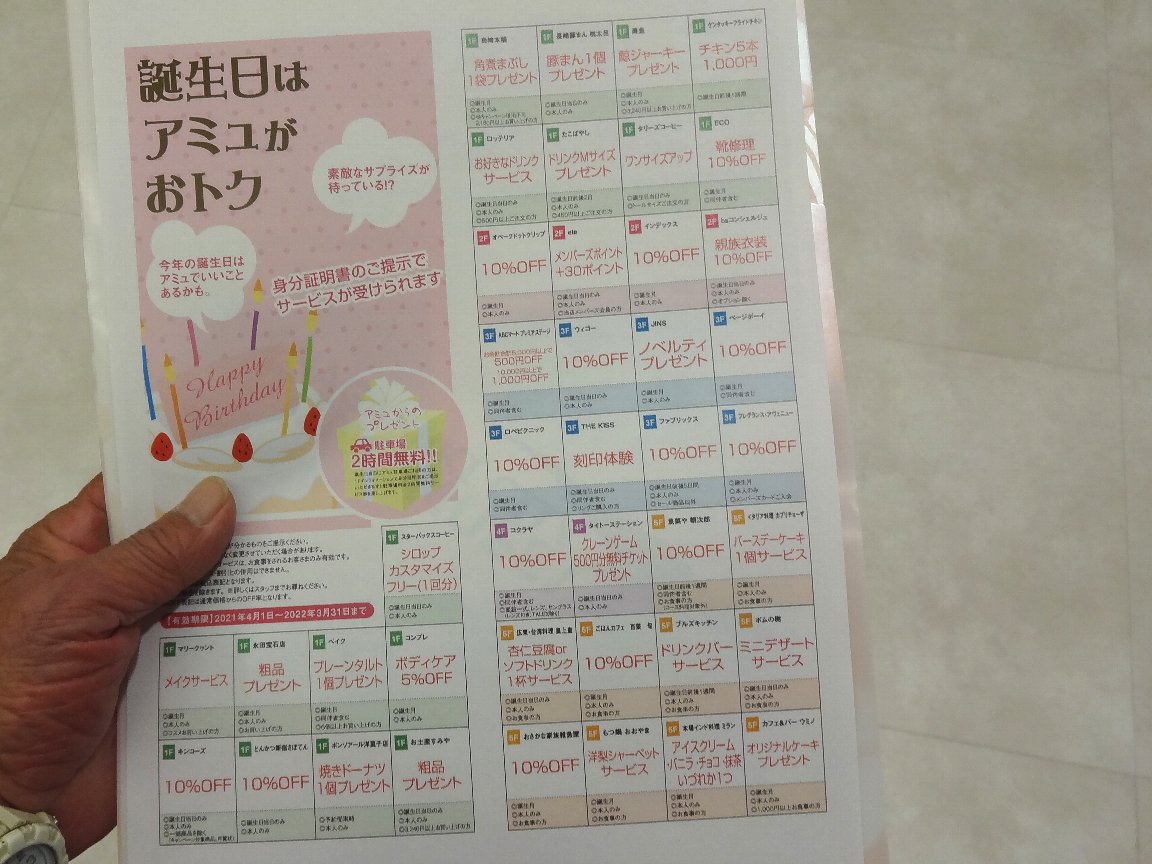 「誕生日はアミュがお得」のサービスの一環である「2時間無料」の駐車券を「サービスカウンター」にもらいに行きましたが「商品券の購入」や「ベビーカーの貸し出し」などのお客さんがいてちょっと時間がかかりました