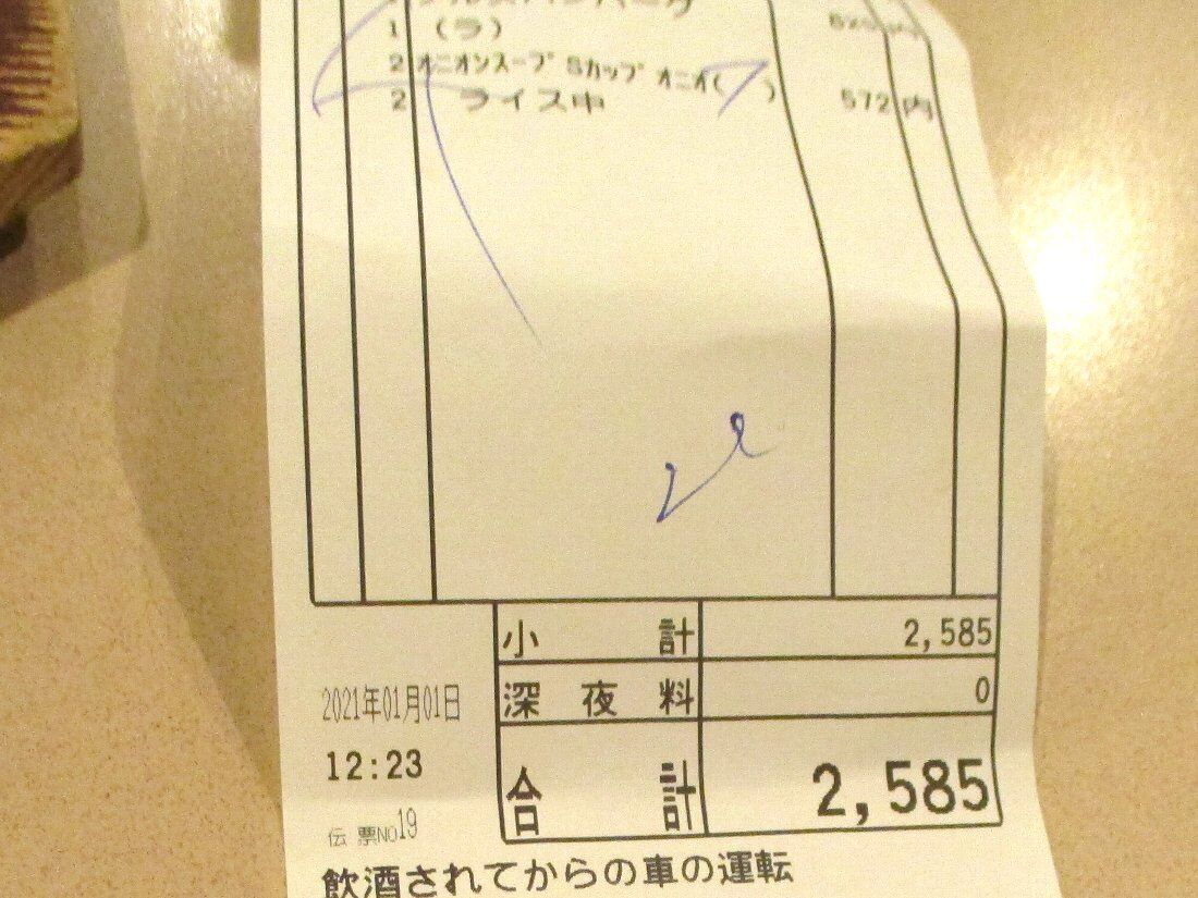 二人合わせて2585円でしたが「カレンダー」の割引クーポンで200円引きになりましたし「GoToイートキャンペーン長崎県版」のクーポンを使い残りは女房が持っている「アミュプラザ」のクレジットで支払いましたから駐車場が「2時間無料」になるんですね(^^)