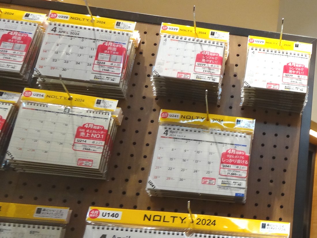 文房具のコーナーに4月スタートの月めくりカレンダーを販売していましたが、ちょっと高いですね(^^;