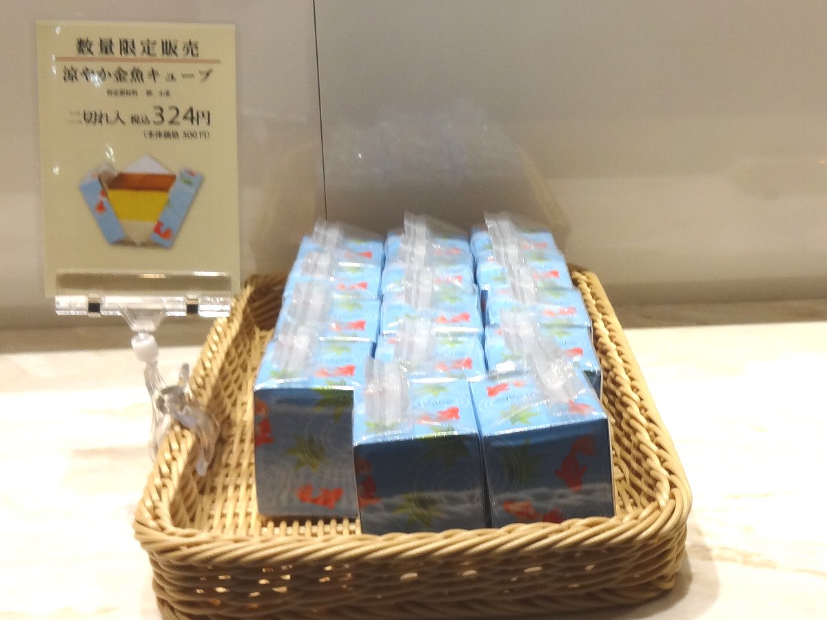 「福砂屋」の「涼やか金魚キューブ」という限定商品がありましたが初めて目にしましたしそれほど高くなかったので女房へのお土産に1個購入しました(^^)