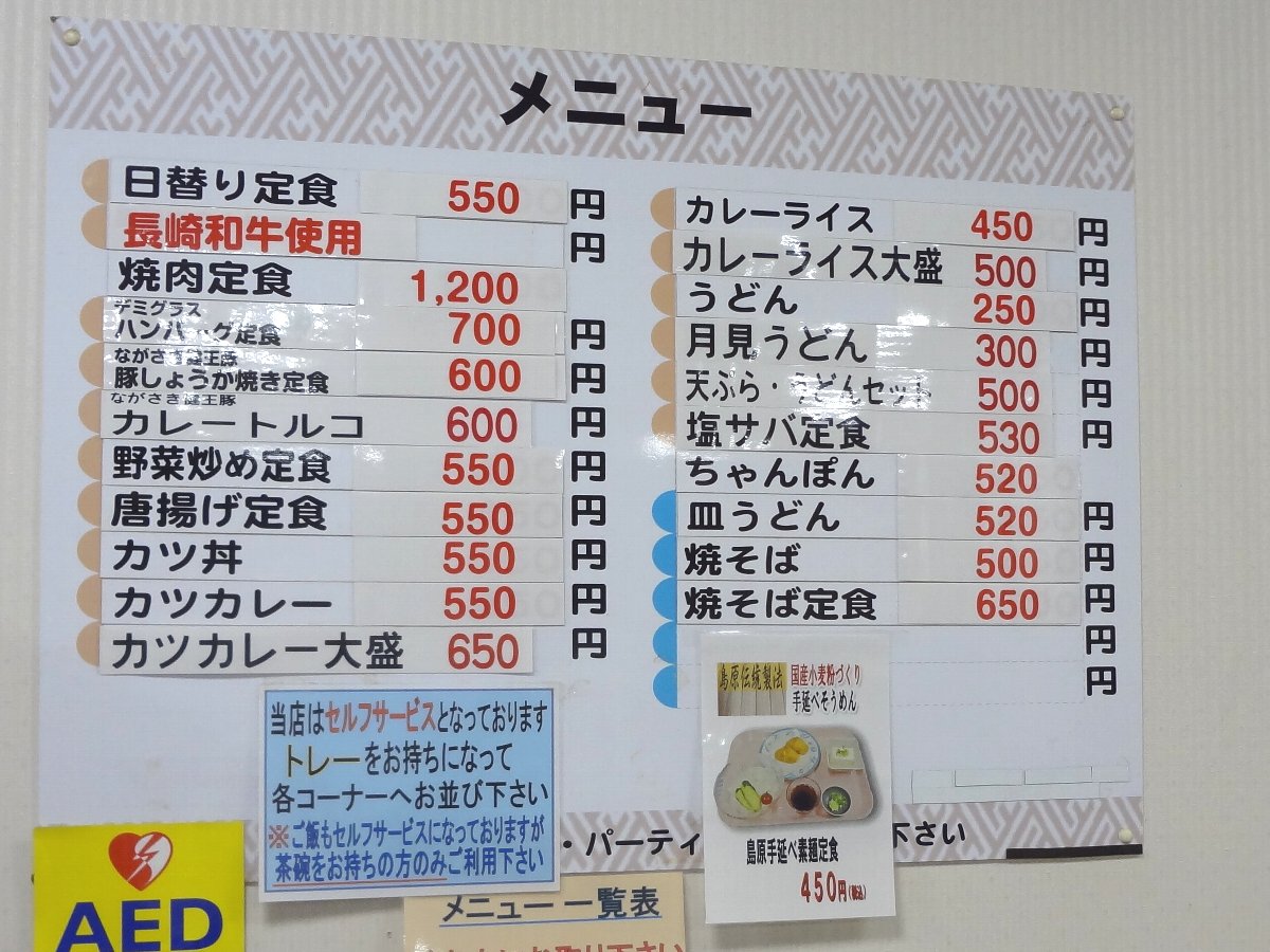 私がよく注文した「太麺皿うどん」や「ちゃんぽん」も470円から520円に上がっています・・・メニューは大きく変わっていますし価格も上がったのは運営を委託されている会社が変わったのでしょうか