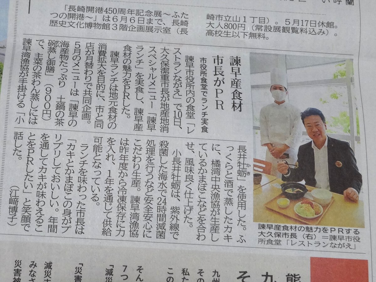 この日の朝刊にこの食堂で提供している「諫早の海産物たっぷり 土鍋の茶碗蒸し御膳」の紹介があったのです・・・たしか数日前にも紹介記事がありましたよね