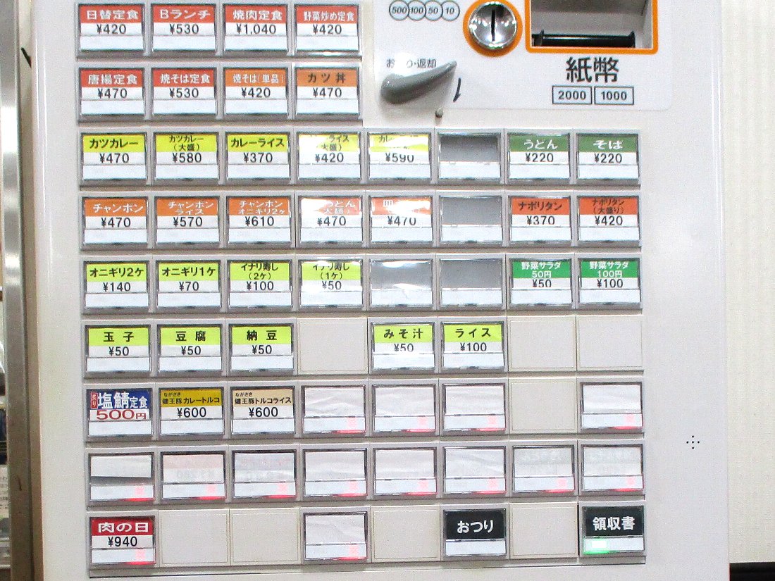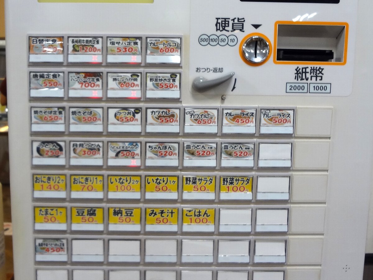 券売機を見ると「うどん」は今でもありますが「そば」はメニューから消えていましたし「ナポリタン」もありません