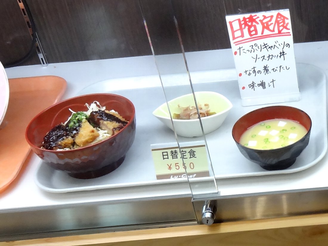 何だかショーウィンドウのメニューの数がかなり少なくなったような気がしますね・・・下段にある「日替り定食」「日替りランチ」はいずれも550円になっていますから前回訪れた2年前に比べると数十円値上がりしています
