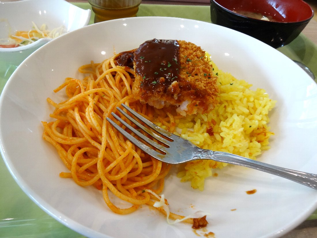「スパゲッティ」に掛けるソースは「トマトソース」にしたのですが「ピラフ」に掛かっている「カレーソース」は不要でしたね・・・やはり「スモールサイズ」にして正解でした(^^)