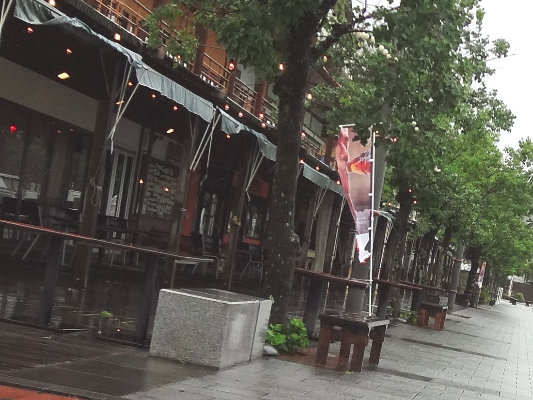 帰りに「出島ワーフ」を通りましたがさすがにこの天気では閑古鳥が鳴いています(^^;